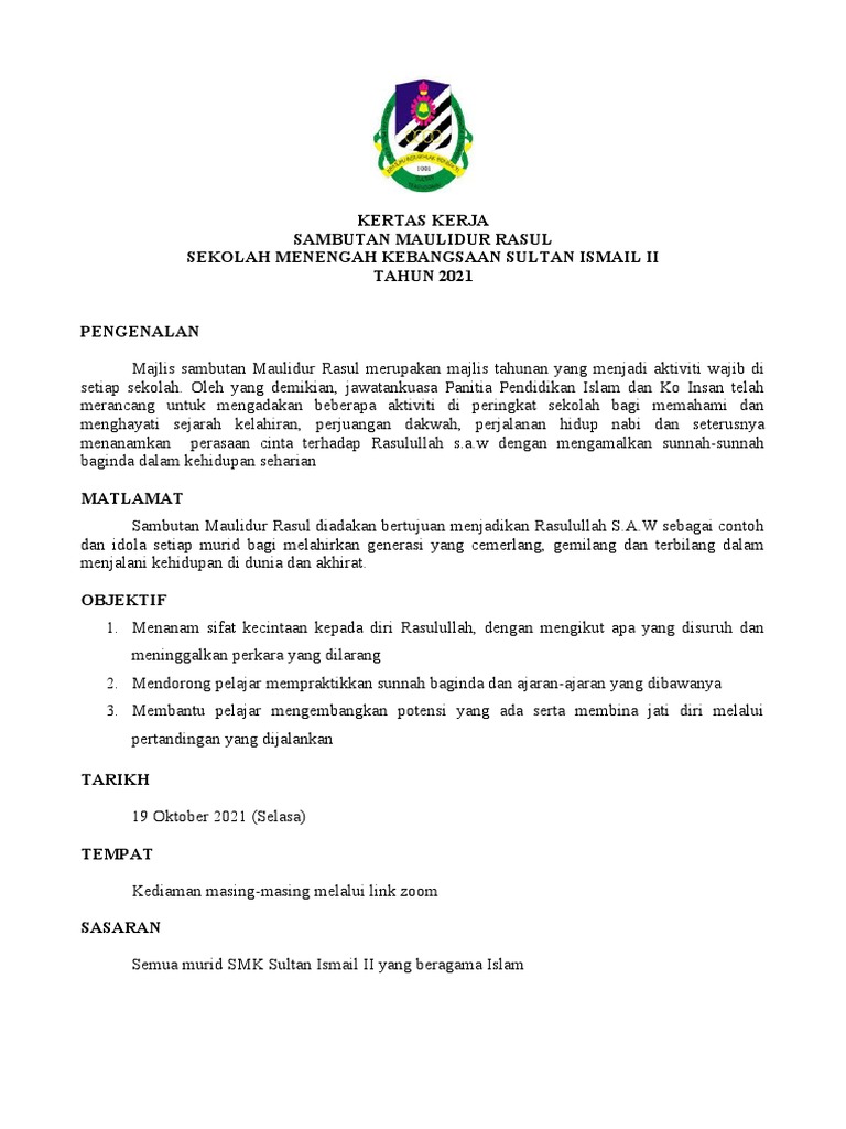 Kertas Kerja Maulidur Rasul 2016 Pdf
