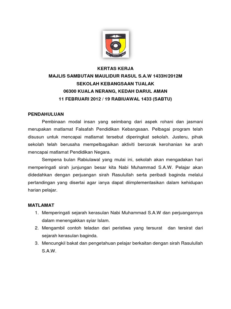 Kertas Kerja Maulidur Rasul 1433h Pdf